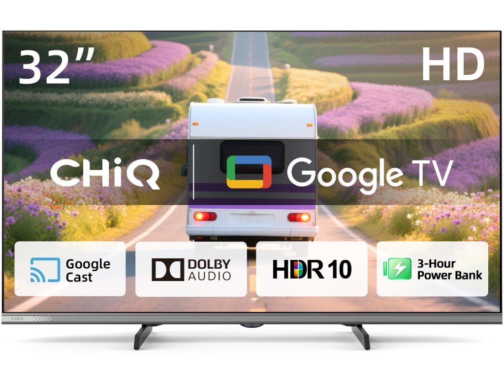 32" CHiQ L32M9PD Powerbank Camping Google TV Wifi 5G v plážové tašce