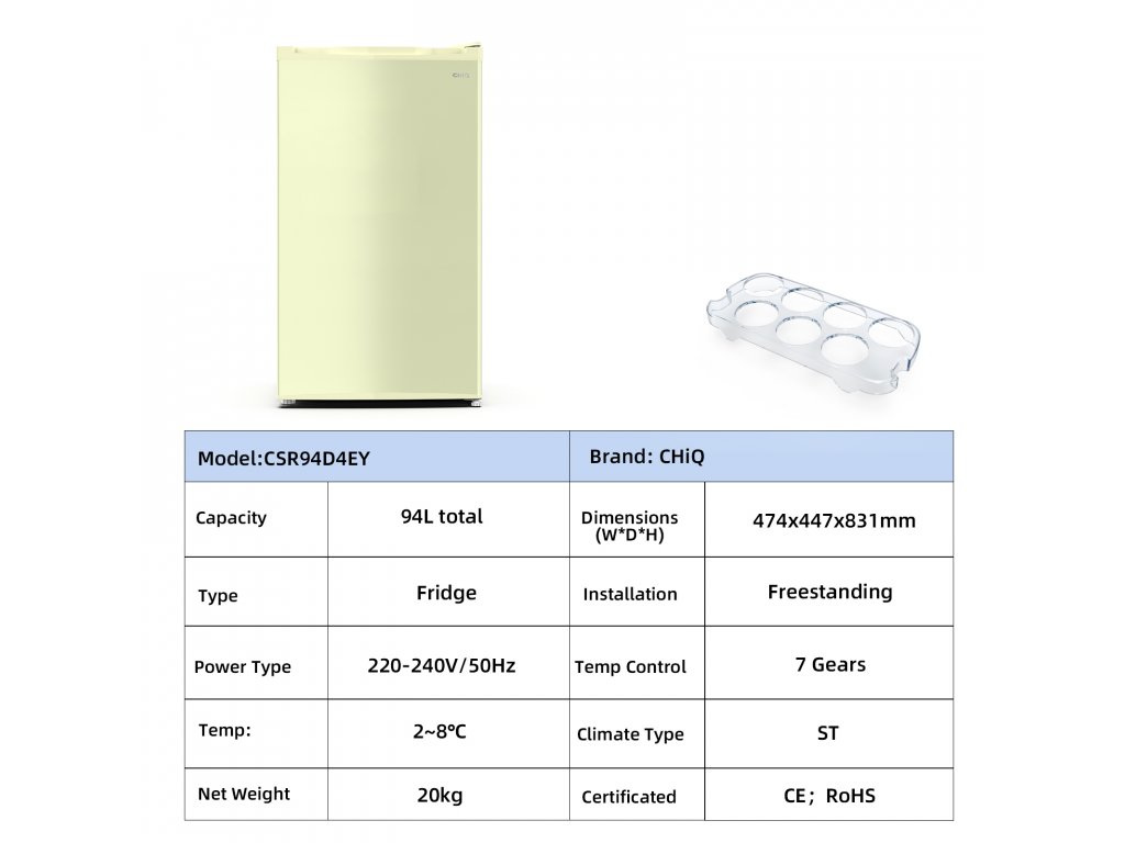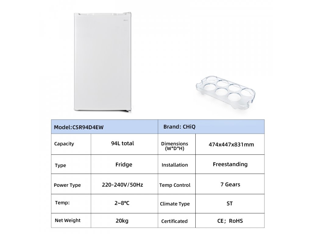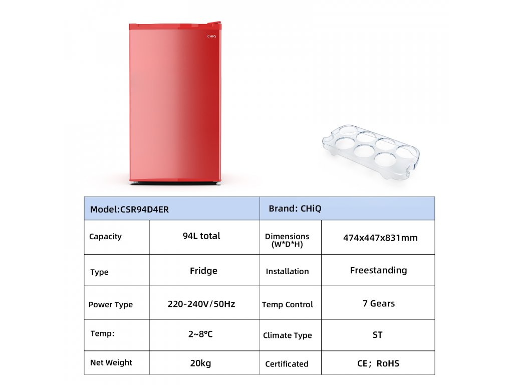 Šetří místo a přináší pohodlí. Lednička CHiQ nabízí kapacitu 94 litrů na kompaktním půdorysu 0,22 m², takže se ideálně hodí do vašeho obývacího pokoje, kuchyně nebo kanceláře. Její vnější rozměry jsou 474 x 447 x 831 mm.