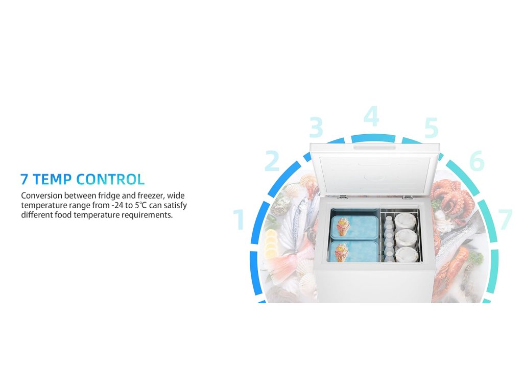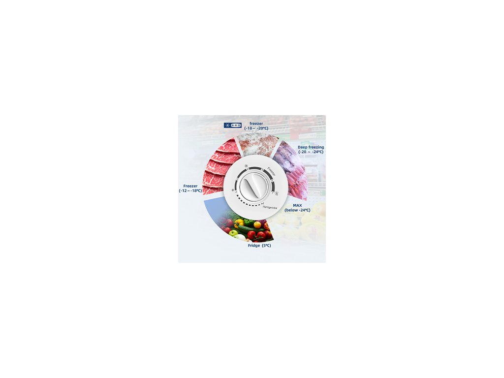 Díky ultra širokému teplotnímu rozsahu od -24 °C do 5 °C lze měnit mrazák na lednici. Je tedy vhodný pro ovoce, zeleninu i jiné potraviny. Lze nastavit 6 úrovní mrazení nebo lednici.