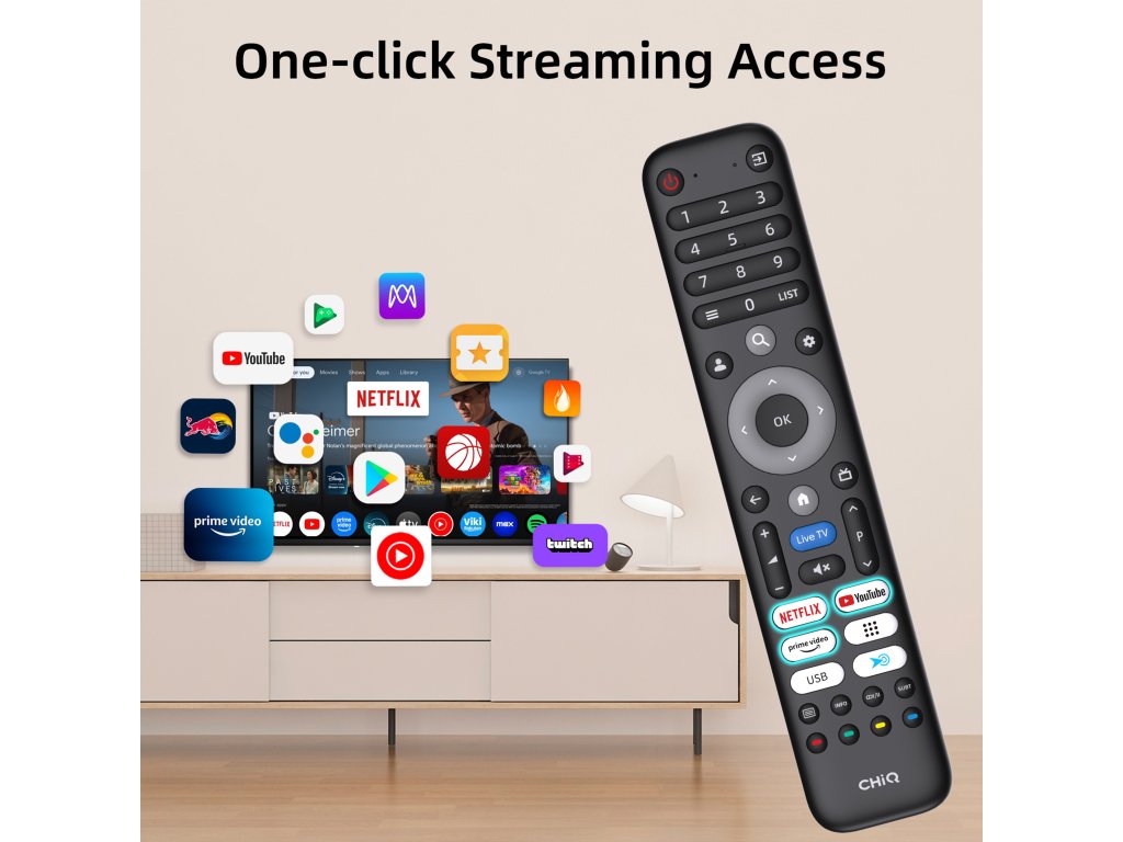 Nově navržený dálkový ovladač vyrobený z materiálů nejvyšší kvality zajistí rychlou a příjemnou komunikaci s televizorem. Vyhrazená tlačítka pro Netflix, Youtube nebo Prime Video vás rychle přivedou k obsahu, který hledáte.