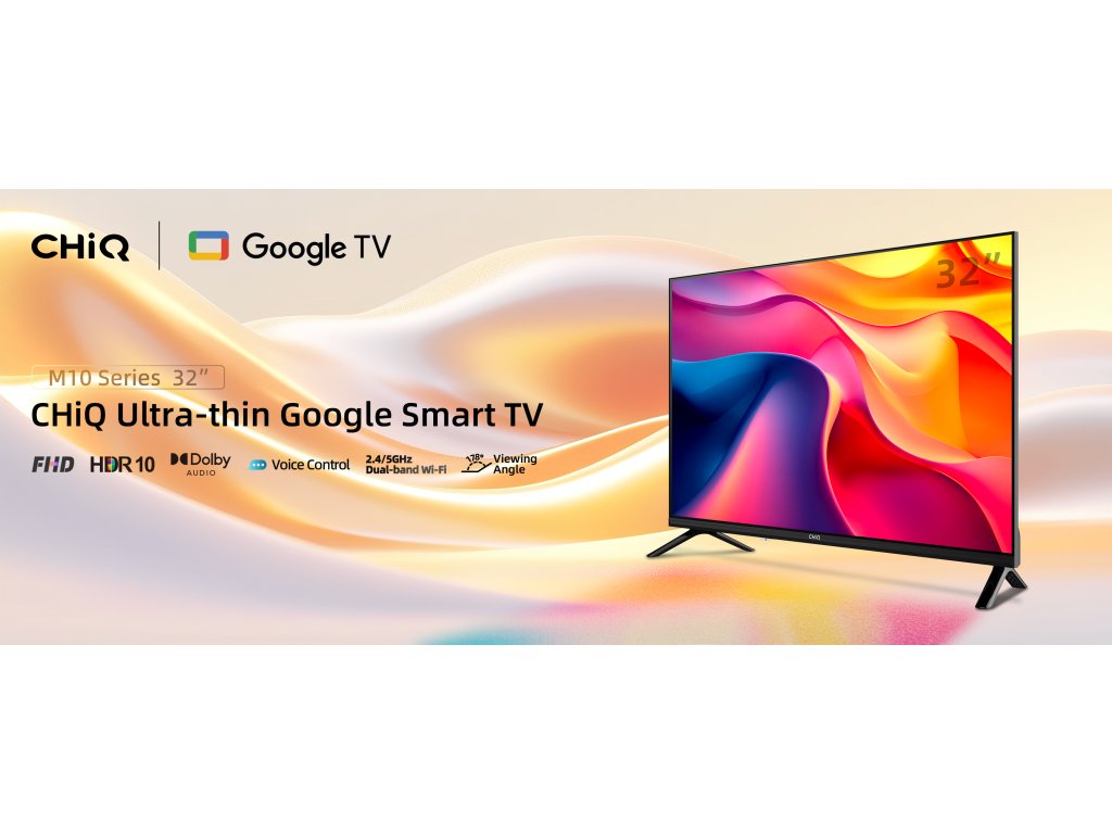 CHiQ 32“ L32FM10V, ultratenká bezrámečková Smart Google TV, HDR10 / HLG, obrazovka Full HD s rozlišením 1920 x 1080 pixelů