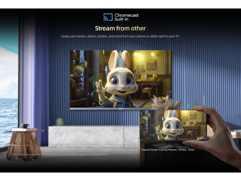 CHiQ TV přináší skvělý filmový zážitek, velké zorné pole a široký pozorovací úhel. Se zavedením nové generace procesu optického spojování mohou být televizní rámy tenčí a užší. Tím se vytvoří větší zobrazovací plocha na stejné velikosti.