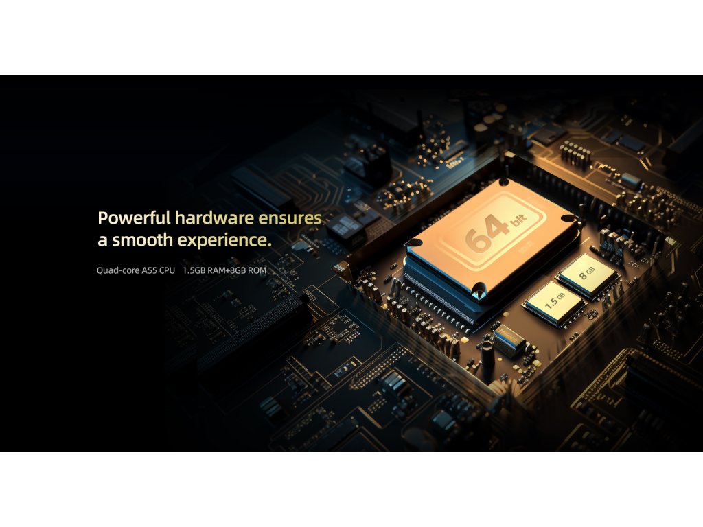 Vysoce výkonný 64bitový čtyřjádrový procesor A55 využívá nejnovější technologii nanočástic a dokáže snadno dekódovat video streamy z různých formátů. Jeho chod je zcela plynulý a garantuje rychlou odezvu. Domácí zábava ještě nikdy nebyla tak skvělá. Navíc velká 8G kapacita paměti vám umožní nainstalovat velké množství aplikací a přitom zachovat dostatek volného místa.