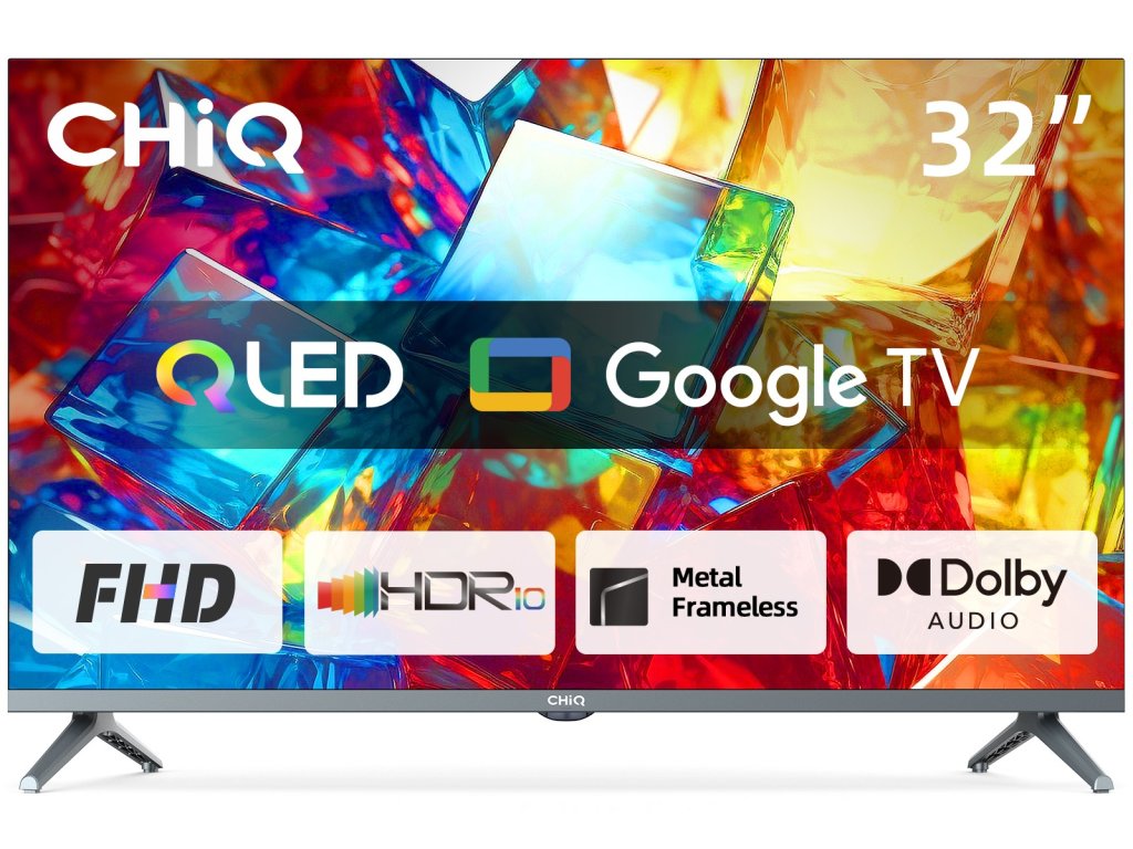 CHiQ 32“ L32QM8T, bezrámečková Smart QLED Google TV, HDR10, obrazovka Full HD s rozlišením 1920 x 1080 pixelů