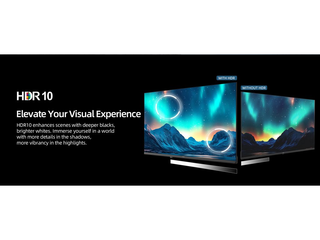 Televizor je vybaven technologií dekódování HDR videa pro dosažení vyšší kvality obrazu. Současně odhaluje nejjasnější barvy i nejtmavší stíny. Umožní vidět více detailů. Užijte si doma dokonalý filmový audiovizuální zážitek a staňte se součástí dění na obrazovce.