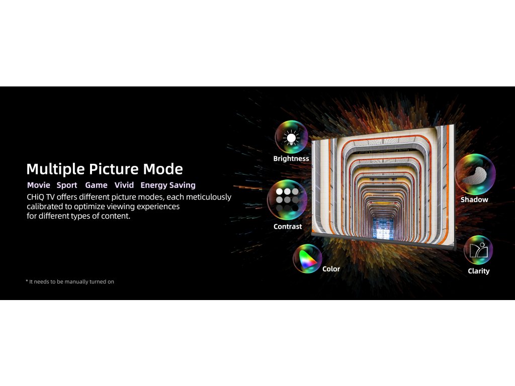 CHiQ TV přináší skvělý filmový zážitek, velké zorné pole a široký pozorovací úhel. Se zavedením nové generace procesu optického spojování mohou být televizní rámy tenčí a užší. Tím se vytvoří větší zobrazovací plocha na stejné velikosti.