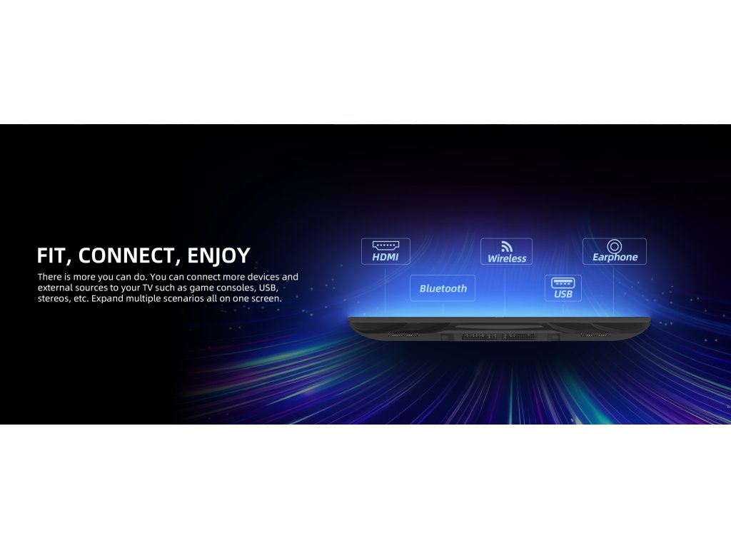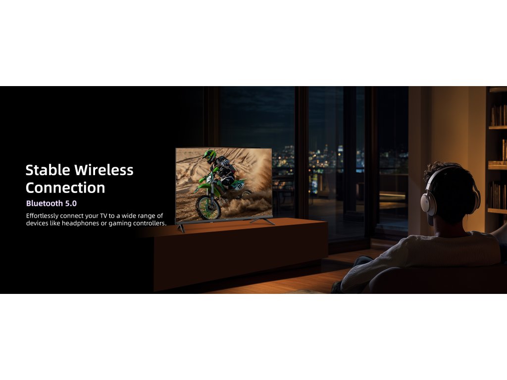 TV má HDMI i USB porty, dvoupásmovou wifi i Bluetooth 5.0. Můžete připojit více zařízení a externích zdrojů, jako třeba herní konzoli, USB flashku, sluchátka nebo soundbar.