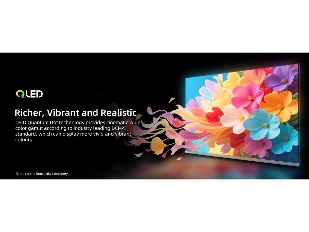 Výjimečná QLED (Quantum Dot Colour) technologie dodá zářivé barvy i vysoký jas a umožňuje televizi CHiQ 32QA10 zobrazovat více než miliardu odstínů barev, mnohem širší škálu barev i barevných tónů. Modrá, zelená i červená se zobrazuje přesněji a intenzivněji než u běžných TV.