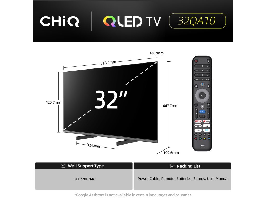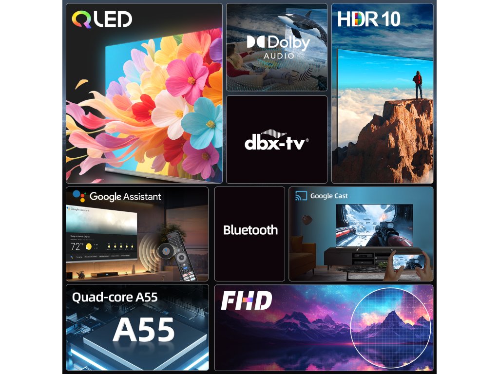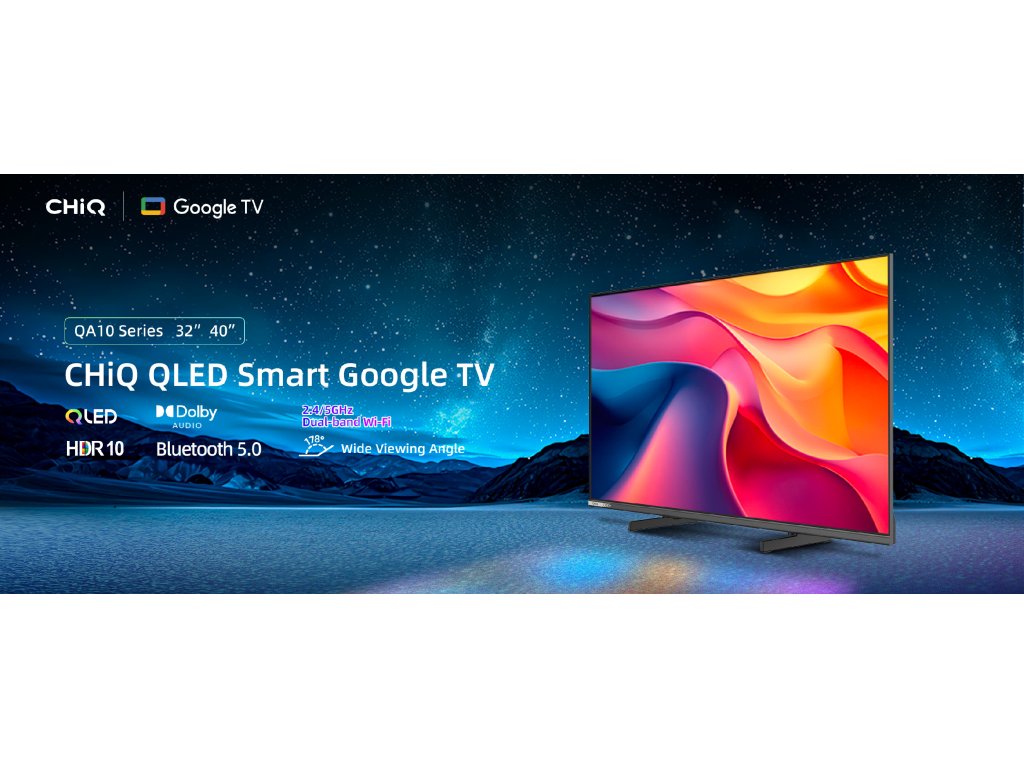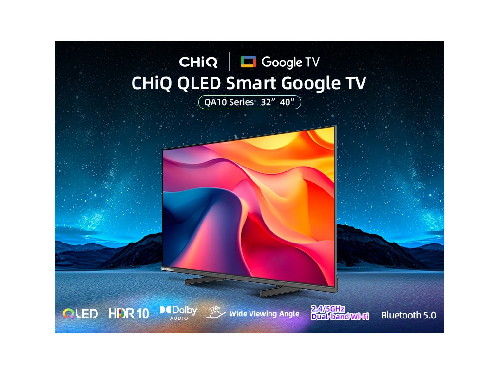 CHiQ 32“ 32QA10, ultratenká bezrámečková Smart QLED Google TV, HDR10, obrazovka Full HD s rozlišením 1920 x 1080 pixelů