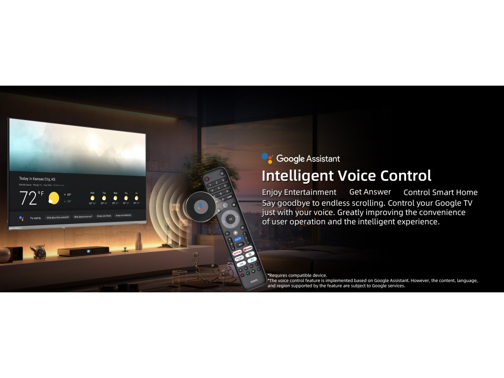 Použijte dálkové ovládání a hledejte obsah, který vás zajímá, jednoduše hlasem. Google Asistent Vám pomůže zkontrolovat počasí, vyhledat filmy nebo televizní programy. Stačí se jen zeptat. Získáte rychlý přístup k zábavě, odpoví na vaše otázky. Pomocí hlasu můžete ovládat další chytrá zařízení v domácnosti. Stačí stisknout tlačítko "Google Assistant" na vašem dálkovém ovladači a sdělit váš pokyn.