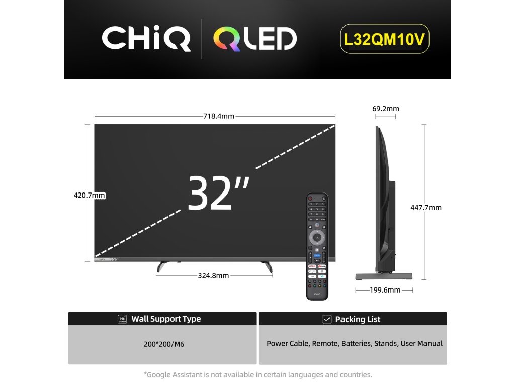 CHiQ 32“ L32QM10V, ultratenká bezrámečková Smart QLED Google TV, HDR10, obrazovka Full HD s rozlišením 1920 x 1080 pixelů