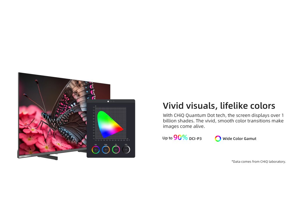 Výjimečná QLED (Quantum Dot Colour) technologie dodá zářivé barvy i vysoký jas a umožňuje televizi CHiQ L32QM10V zobrazovat více než miliardu odstínů barev, mnohem širší škálu barev i barevných tónů. Modrá, zelená i červená se zobrazuje přesněji a intenzivněji než u běžných TV.