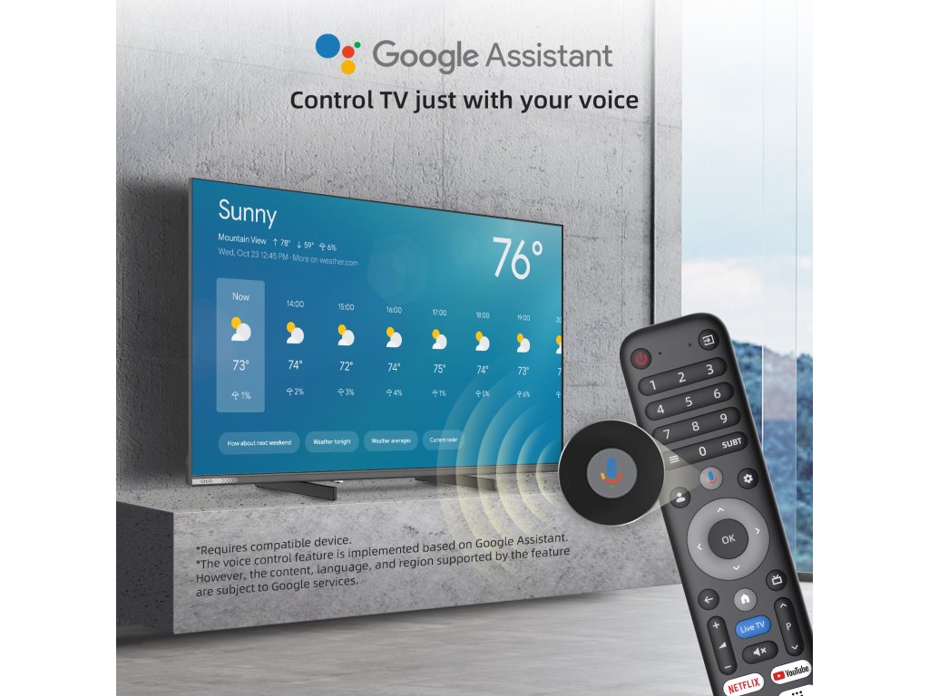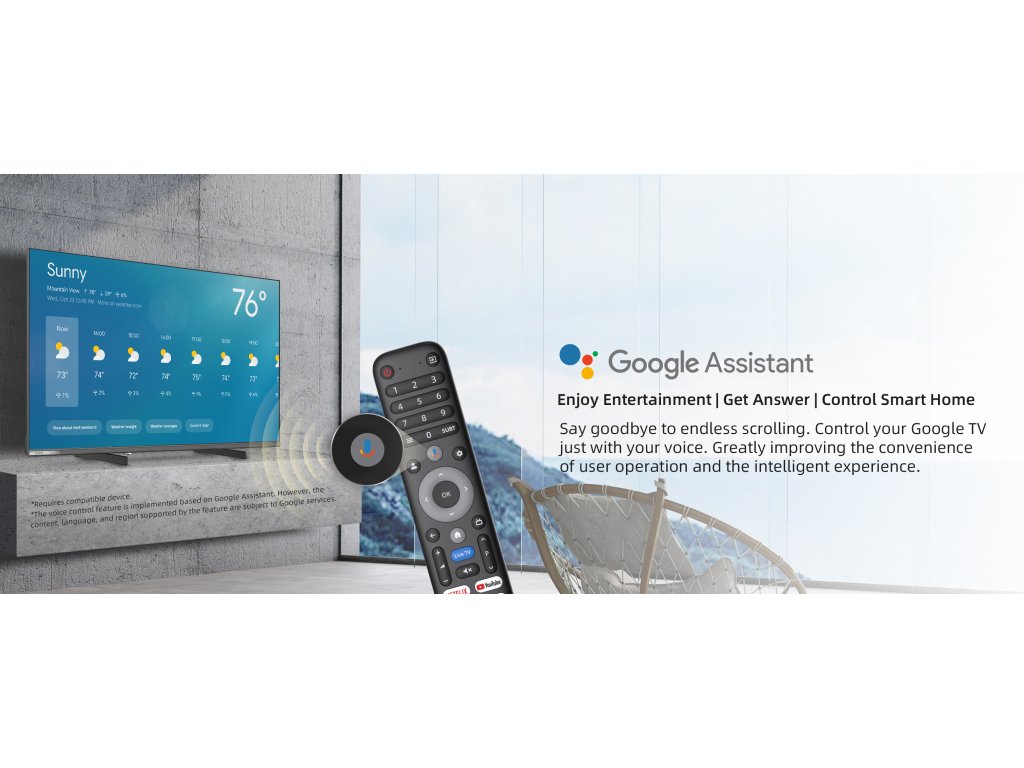 Použijte dálkové ovládání a hledejte obsah, který vás zajímá, jednoduše hlasem. Google Asistent Vám pomůže zkontrolovat počasí, vyhledat filmy nebo televizní programy. Stačí se jen zeptat. Získáte rychlý přístup k zábavě, odpoví na vaše otázky. Pomocí hlasu můžete ovládat další chytrá zařízení v domácnosti. Stačí stisknout tlačítko "Google Assistant" na vašem dálkovém ovladači a sdělit váš pokyn.