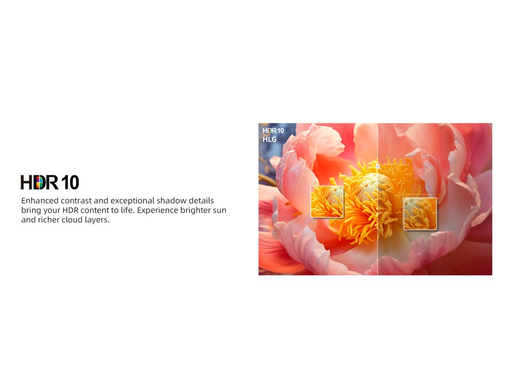 HDR10 s vysokým kontrastem a ostrými detaily. Objevte každou drobnost.