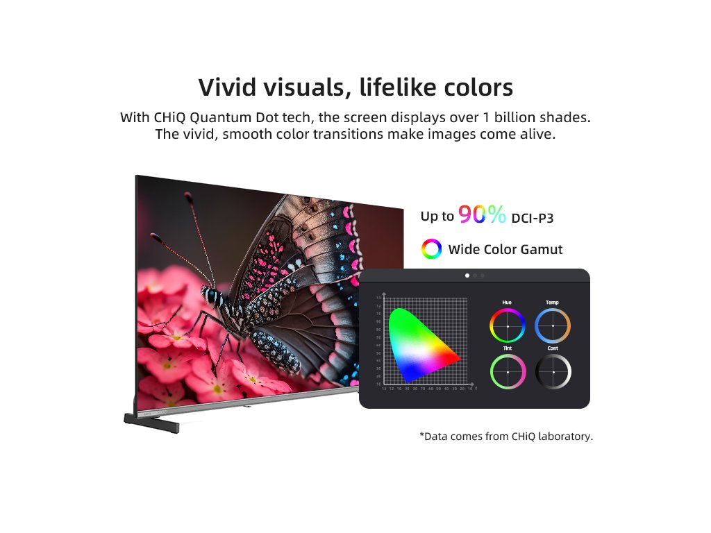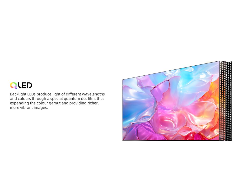 Výjimečná QLED (Quantum Dot Colour) technologie dodá zářivé barvy i vysoký jas a umožňuje televizi CHiQ L40QM10V zobrazovat mnoho milionů odstínů barev, mnohem širší škálu barev i barevných tónů. Modrá, zelená i červená se zobrazuje přesněji a intenzivněji než u běžných TV.