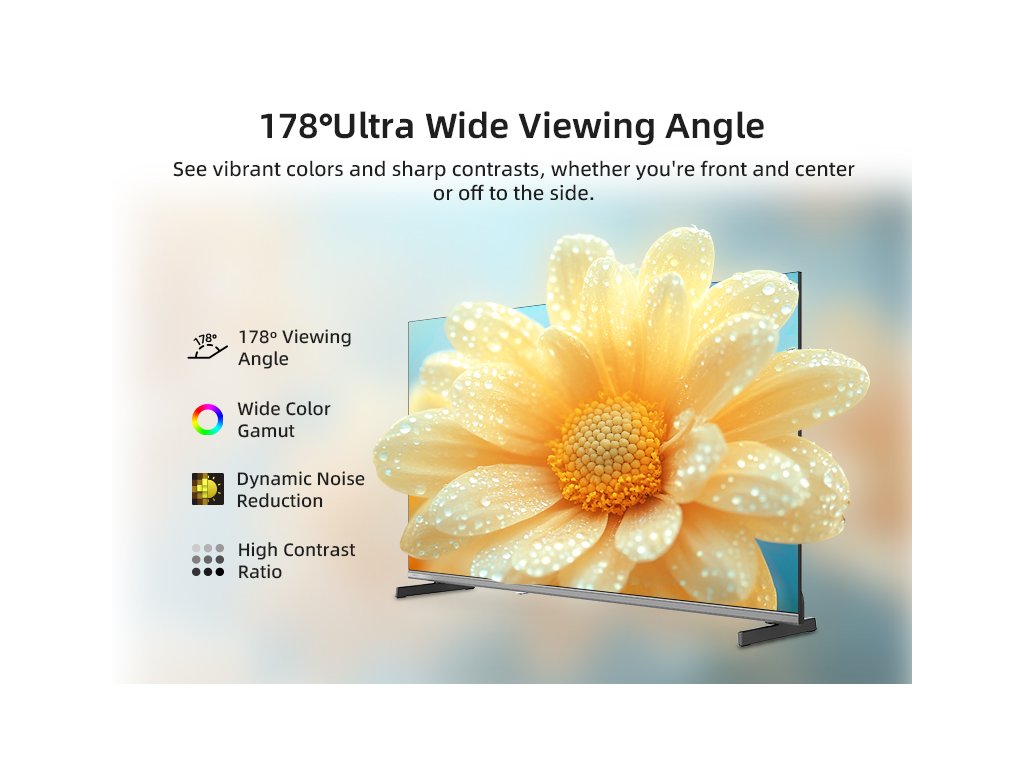 CHiQ TV přináší skvělý filmový zážitek, velké zorné pole a široký pozorovací úhel. Se zavedením nové generace procesu optického spojování mohou být televizní rámy tenčí a užší. Tím se vytvoří větší zobrazovací plocha na stejné velikosti.