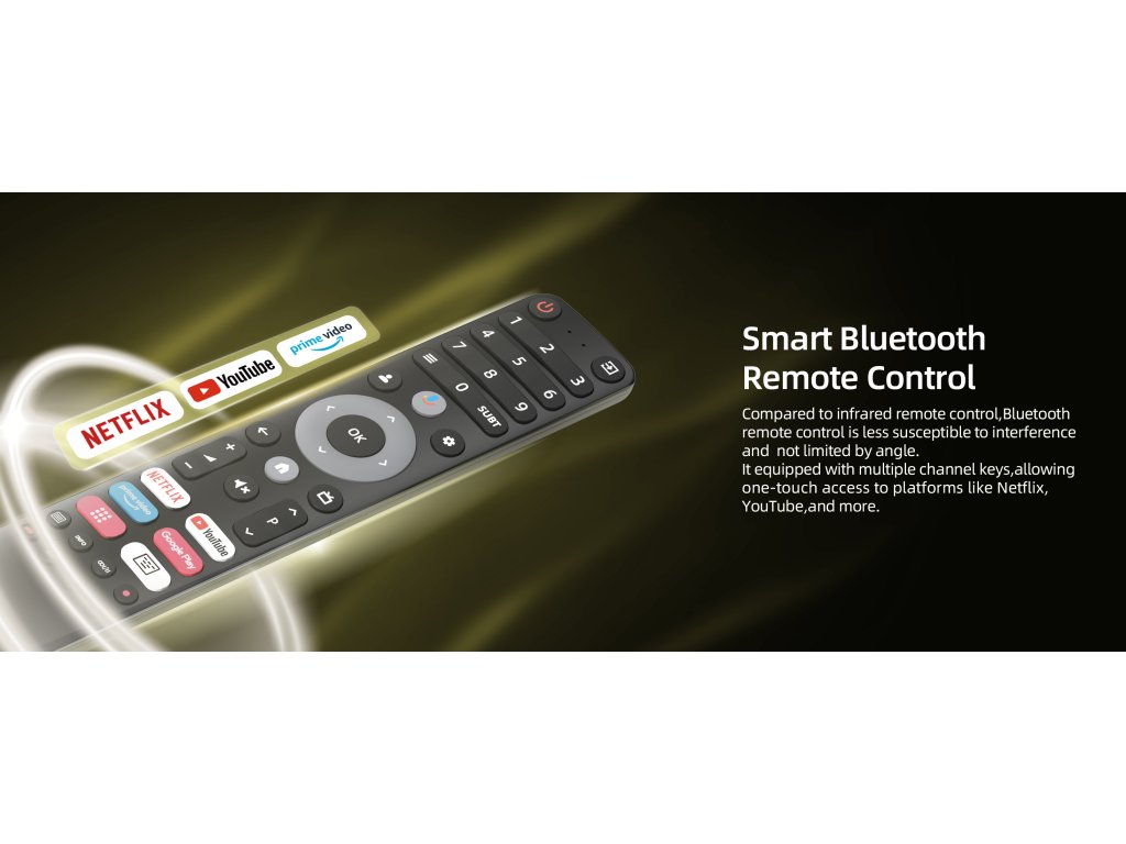 Také dálkový ovladač je vyrobený z materiálů nejvyšší kvality. Zajistí rychlou a příjemnou komunikaci s televizorem. Vyhrazená tlačítka na Netflixu, Youtube, Google Play nebo Prime Video vás rychle přivedou k obsahu, který hledáte.
