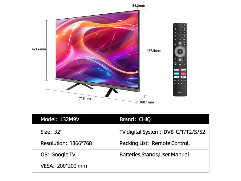 - Televizory CHiQ získaly řadu ocenění na mezinárodních výstavách, včetně Best Design, Best EXterior Design a Best Industrial Design Among Global Smart TVs.