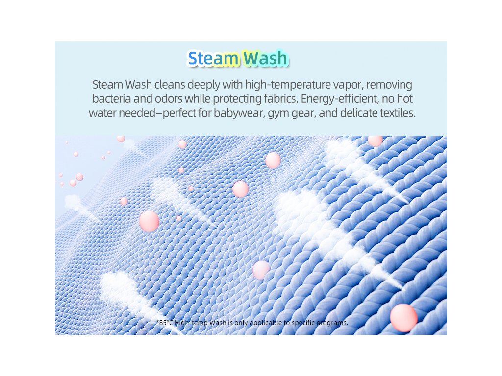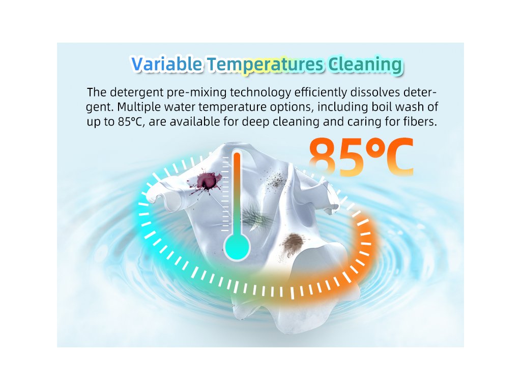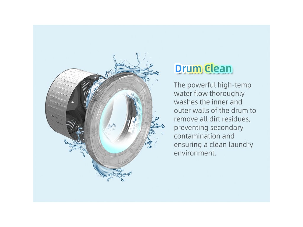 Silný proud horké vody při teplotě 85°C pečlivě vyčistí a odstraní všechny zbytky nečistot i baktérií z vnitřního i vnějšího povrchu bubnu a zajistí zdravé prostředí uvnitř pračky. Nestane se, aby cokoli ušpinilo Vaše další prádlo.