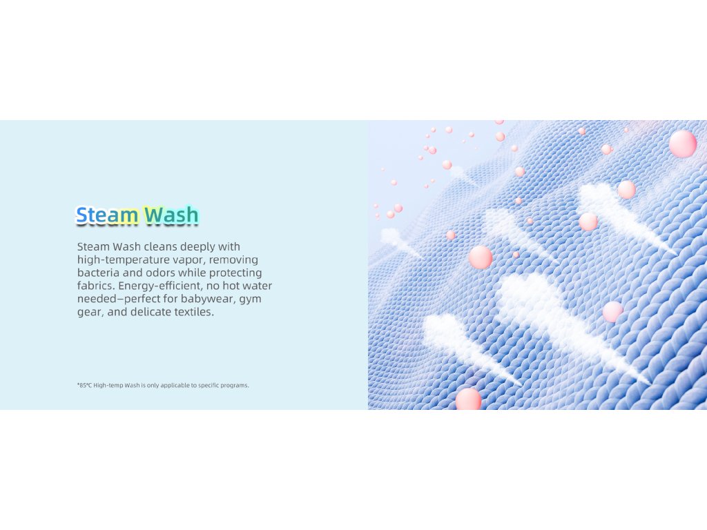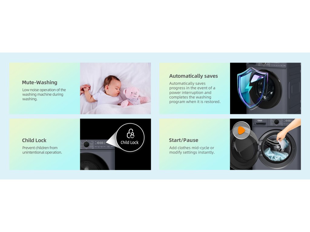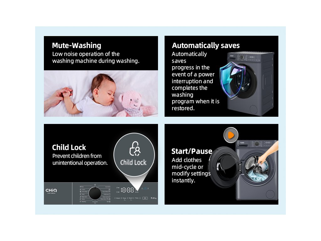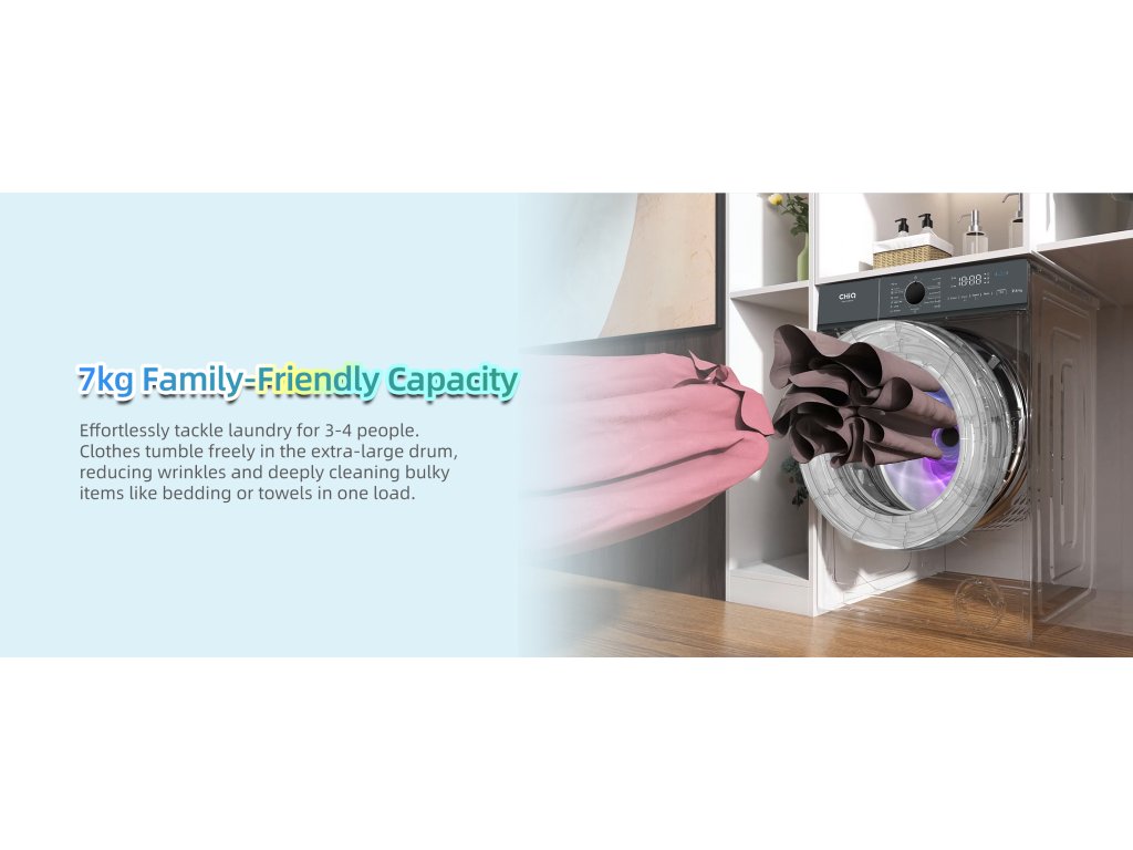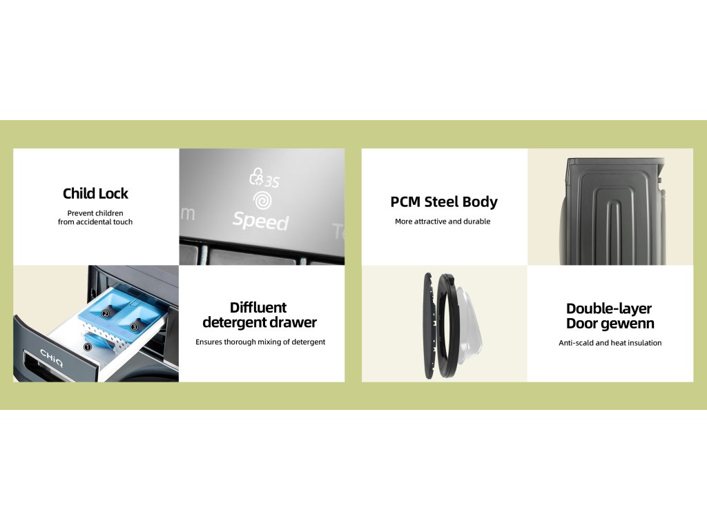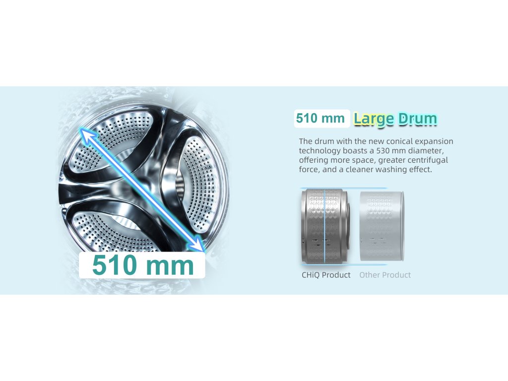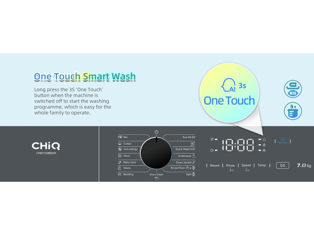 Moderní technologie parní pračky CHiQ CW07123863AX Steam Space Pro vám přináší spolehlivost, nízkou spotřebu a dlouhou životnost.