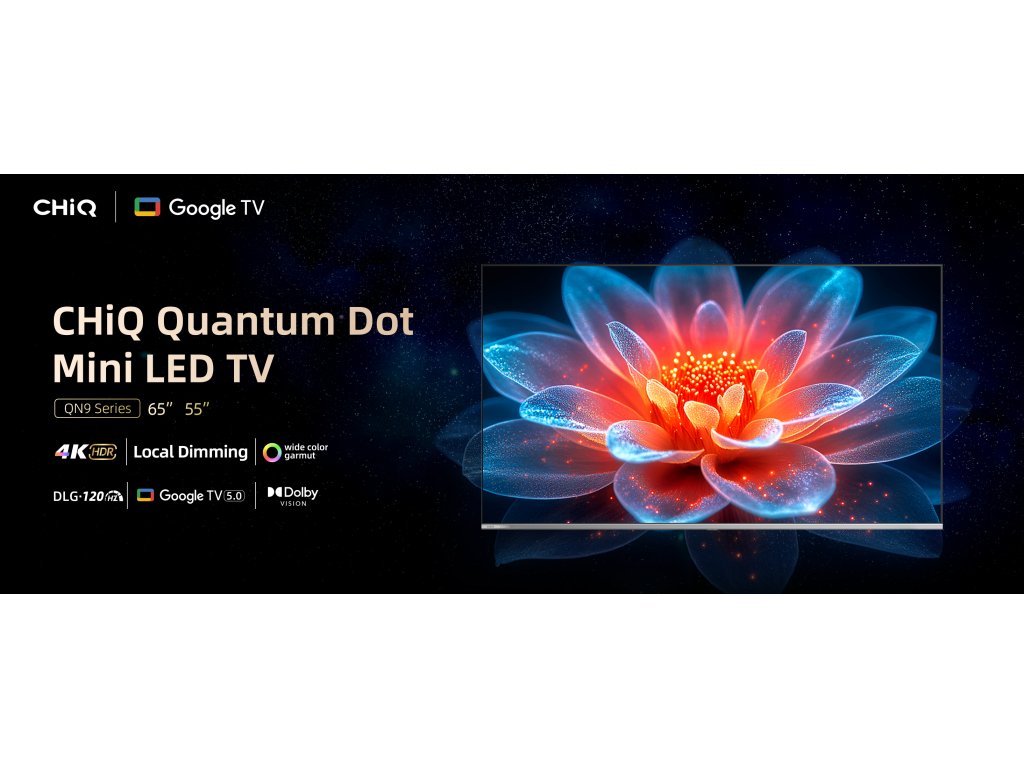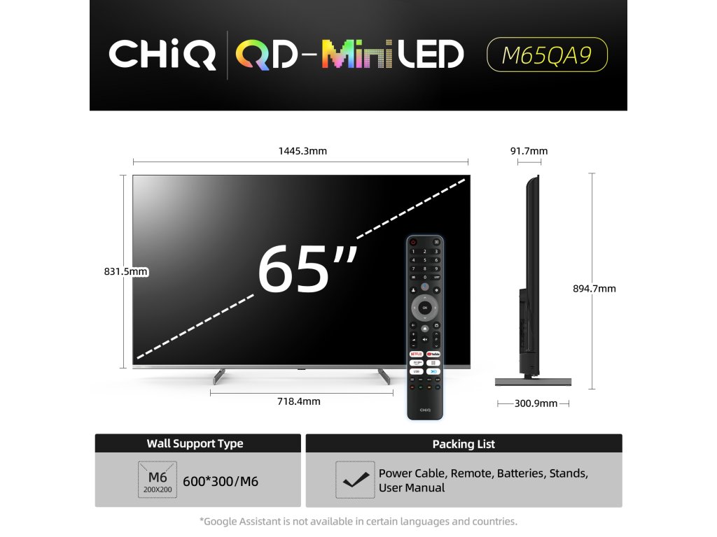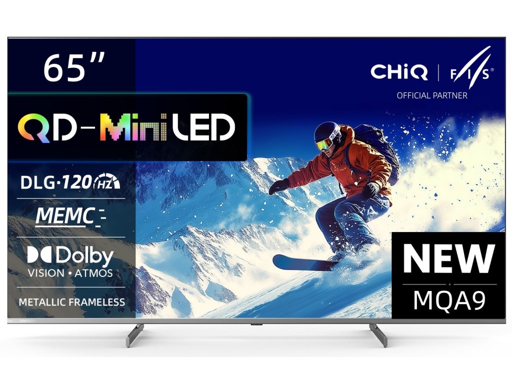 CHiQ 65“ M65QA9, metalická MiniLED Google TV 5.0 s DLG 120 Hz a MEMC, HDR10, HLG, Dolby Vision, lokálním stmíváním, obrazovkou s Ultra HD s rozlišením 3840 x 2160 pixelů, Dolby Atmos a vylepšeným zvukem dbx-tv.