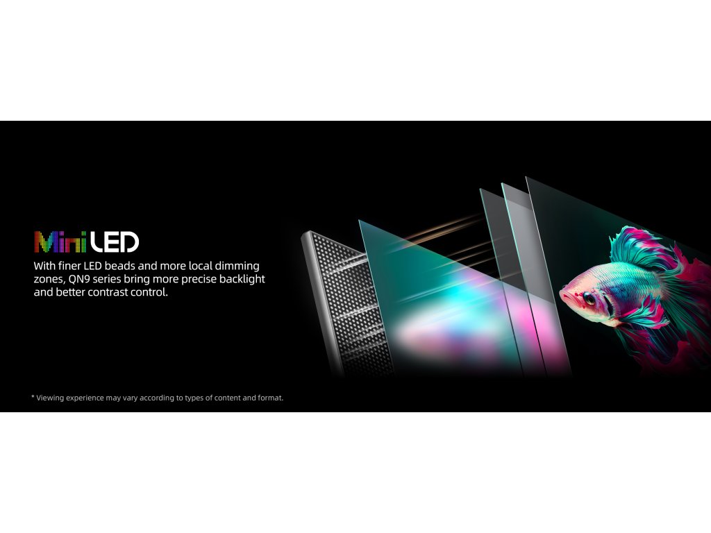 Diody technologie Mini LED mají 0,1 mm nebo i méně, a tak dokáží přesněji světelně kopírovat obsah na obrazovce. Jedná se o nejlepší variantu lokálního stmívání, jakou dnes můžeme v televizorech najít. Zajistí tak lepší kontrast, hlubší černou a absenci výraznějších přechodů mezi barvami (např. tma kolem Měsíce).