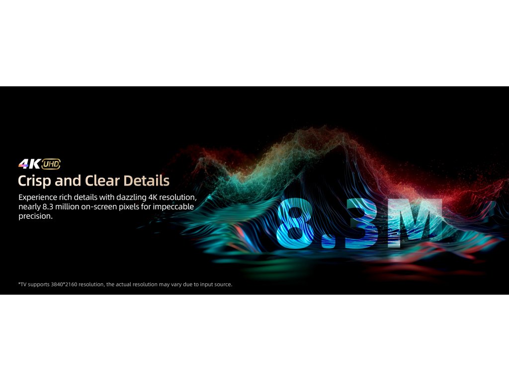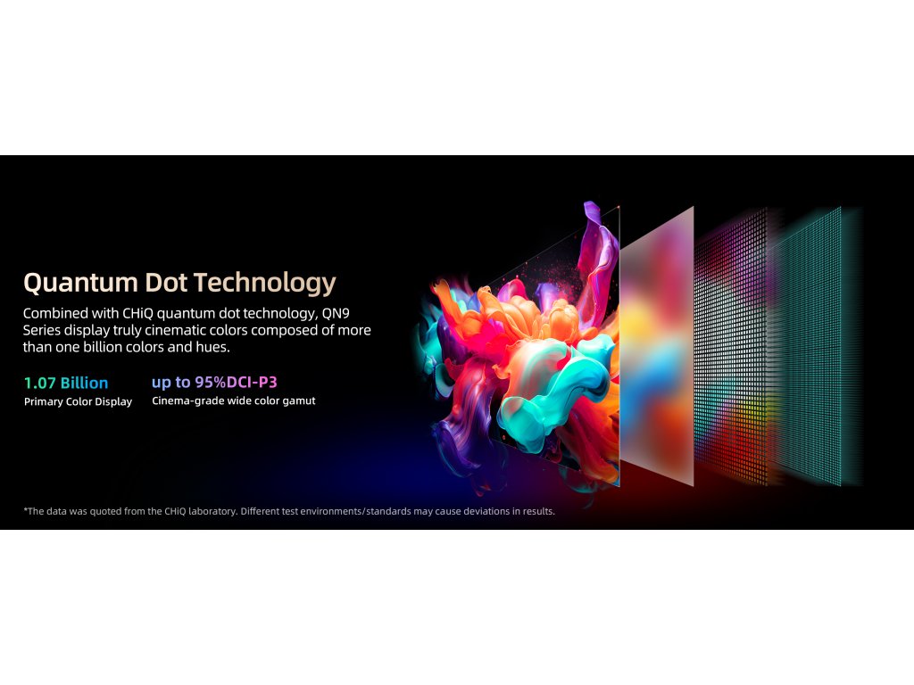 Výjimečná QLED (Quantum Dot Colour) technologie dodá zářivé barvy i vysoký jas a umožňuje televizi CHiQ M65QA9 zobrazovat více než miliardu odstínů barev, mnohem širší škálu barev i barevných tónů. Modrá, zelená i červená se zobrazuje přesněji a intenzivněji než u běžných TV. Také porovnejte detaily s HD nebo Full HD rozlišením. Na této TV jich uvidíte mnohem více.