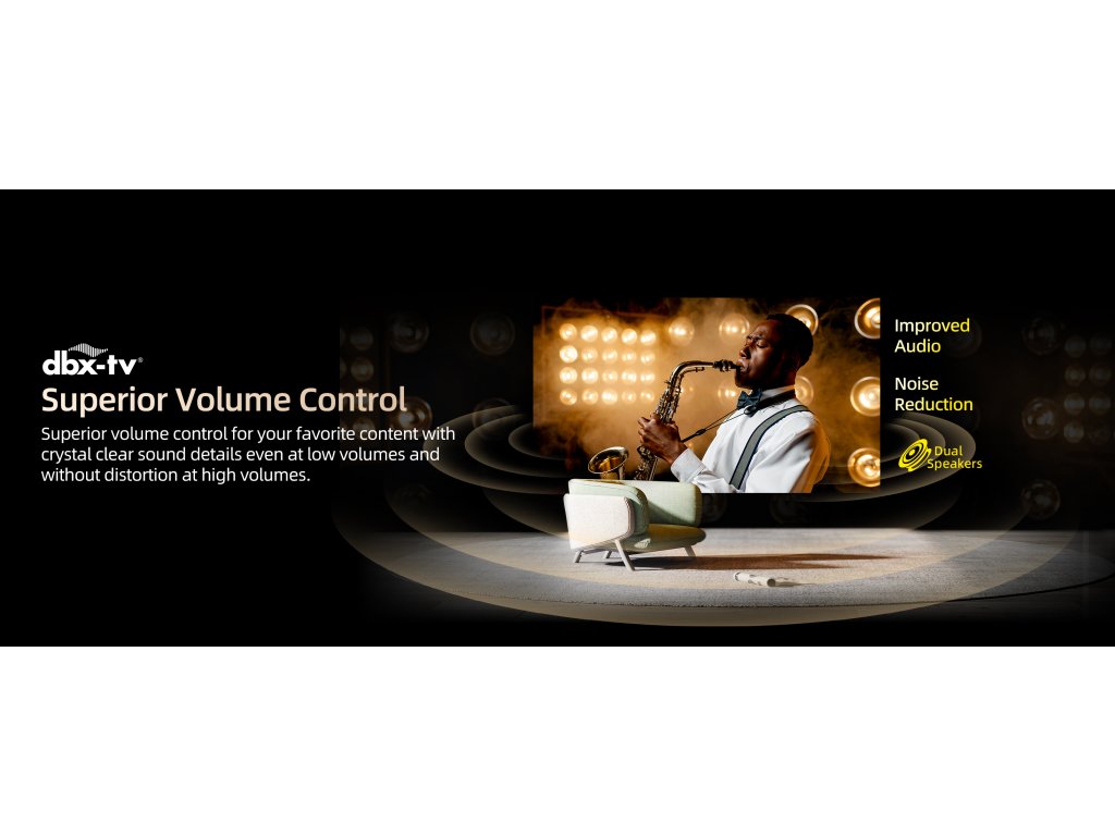 Úžasný zvuk a hlubší propojení s obrazem. Díky pokročilému nastavení přináší 5 pásmový ekvalizér do vašeho domova ohromující, vícevrstvý zvukový zážitek jako v kině. Také je připravena vám poskytnout vynikající vylepšení zvuku dbx-tv, které vzešlo od předních světových vývojářů zvukových technologií. Toto řešení zahrnuje: