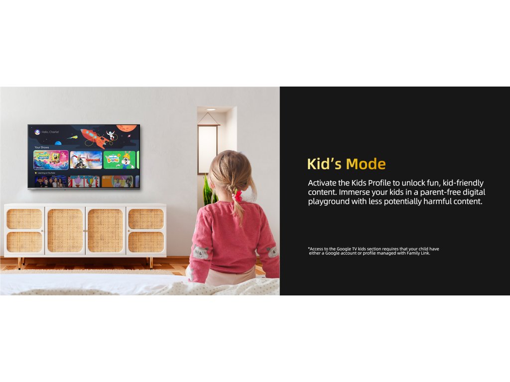 Google TV 5.0 nabízí uživatelsky přívětivé rozhraní, které umožňuje snadný přístup k aplikacím jako např. Netflix, YouTube a Disney+, ale také hlasové ovládání prostřednictvím Google Assistant. Rovněž obsahuje rodičovský režim a další uživatelsky přívětivé funkce. Objevte zábavu dle svého gusta. Google Vám napoví i pomůže.