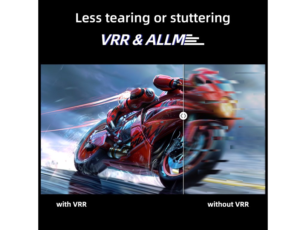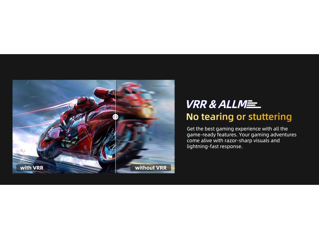 VRR (Variabilní obnovovací frekvence) synchronizuje obnovovací frekvenci vaší televize s herním zařízením, což eliminuje trhání obrazu a zajišťuje plynulejší herní zážitek.