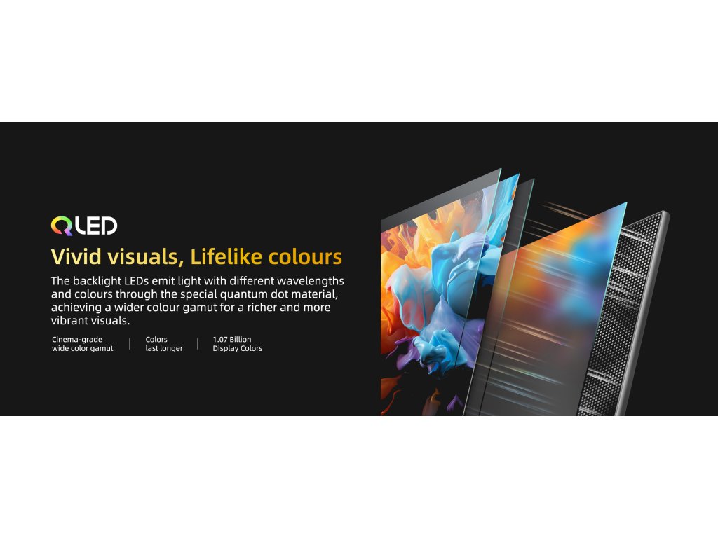 Výjimečná QLED (Quantum Dot Colour) technologie dodá zářivé barvy i vysoký jas a umožňuje televizi CHiQ 43QA10 zobrazovat více než miliardu odstínů barev, mnohem širší škálu barev i barevných tónů. Modrá, zelená i červená se zobrazuje přesněji a intenzivněji než u běžných TV. Také porovnejte detaily s HD nebo Full HD rozlišením. Na této TV jich uvidíte mnohem více.