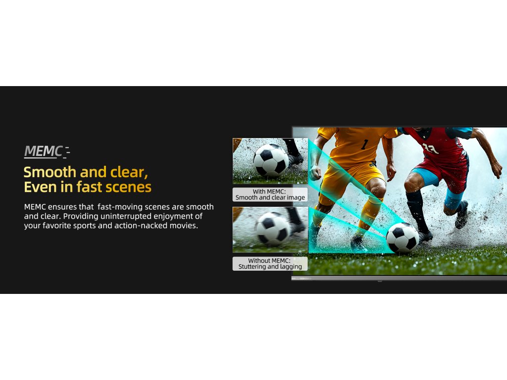 MEMC zajistí, aby rychlé scény byly hladké a plynulé, což oceníte zejména při sledování sportovních utkání (tenis, hokej, fotbal), automobilových závodech nebo akčních filmech.