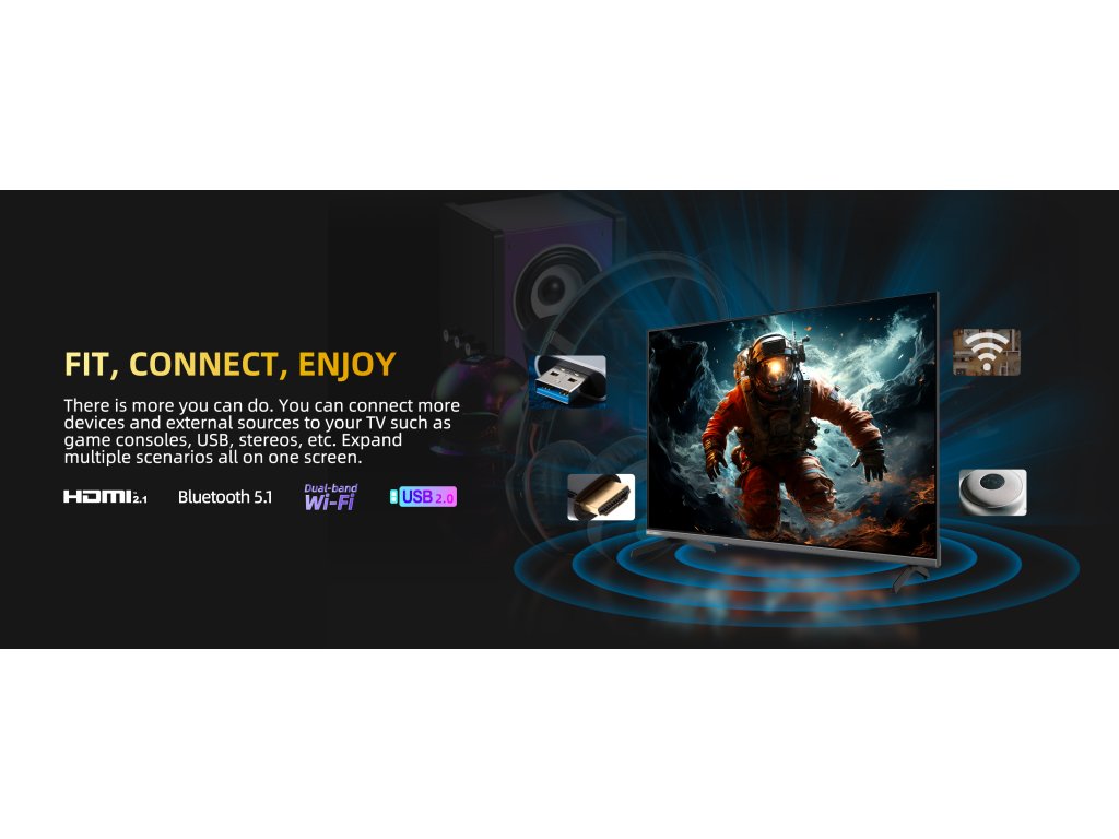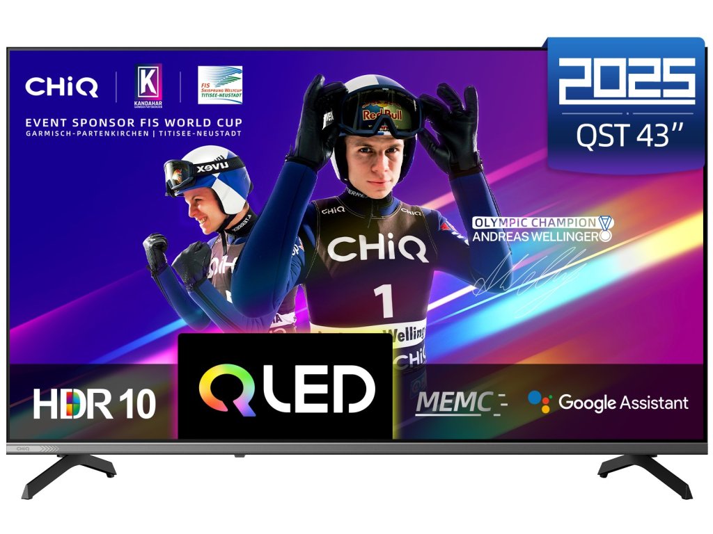 CHiQ 43“ U43QST, ultratenká metalická bezrámečková QLED Smart Google TV 5.0 s několika herními funkcemi, HDR10, HLG, obrazovkou s Ultra HD s rozlišením 3840 x 2160 pixelů, prostorovým zvukem Dolby Audio a dbx-tv.